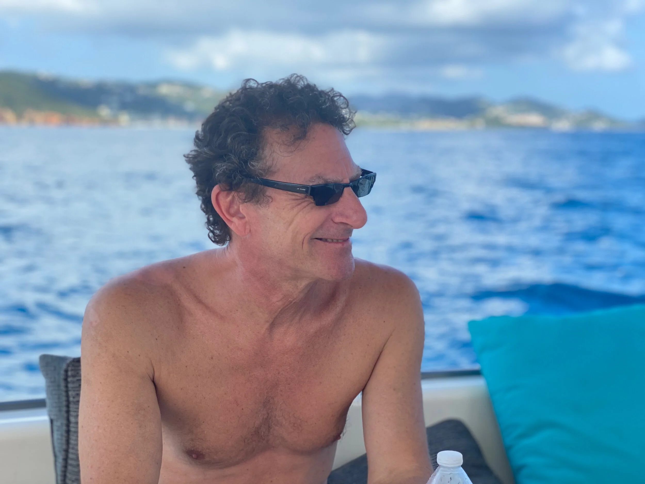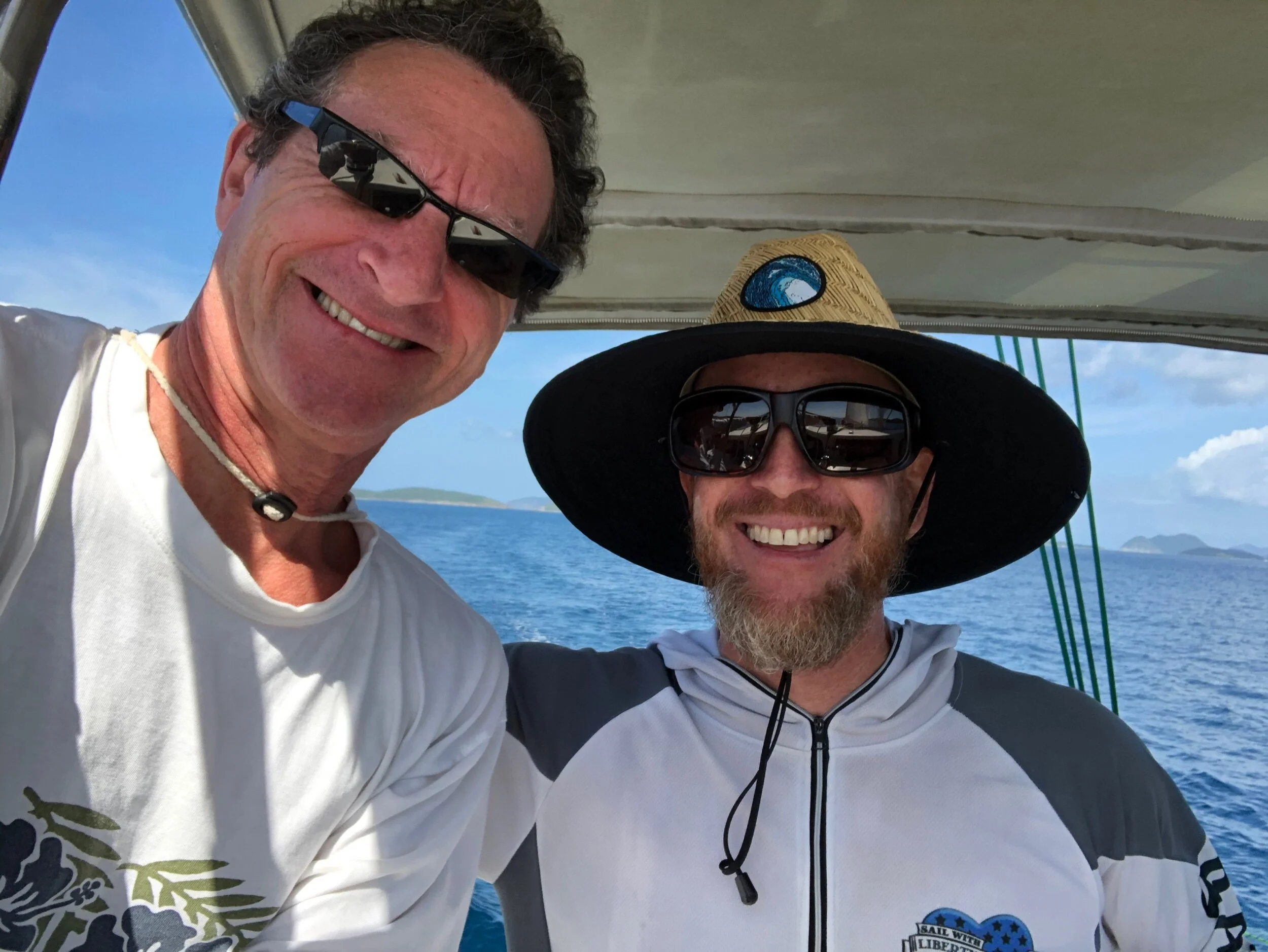 Ryan Diehl of the charter company Sail With Liberty hosted Jaguar (minus Rick and his broken foot) for a day sail. We were lucky enough to sail with Ryan last January. We were so happy he was available this year. Chris and Jason know Ryan from we he was a famous drummer in the Baltimore / Washington area. Now he a famous drummer / boat captain in the Caribbean. How cool is that?